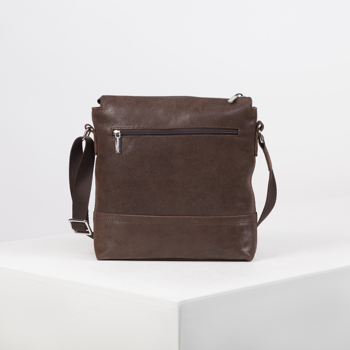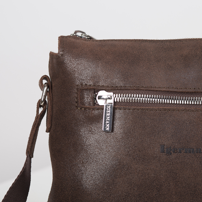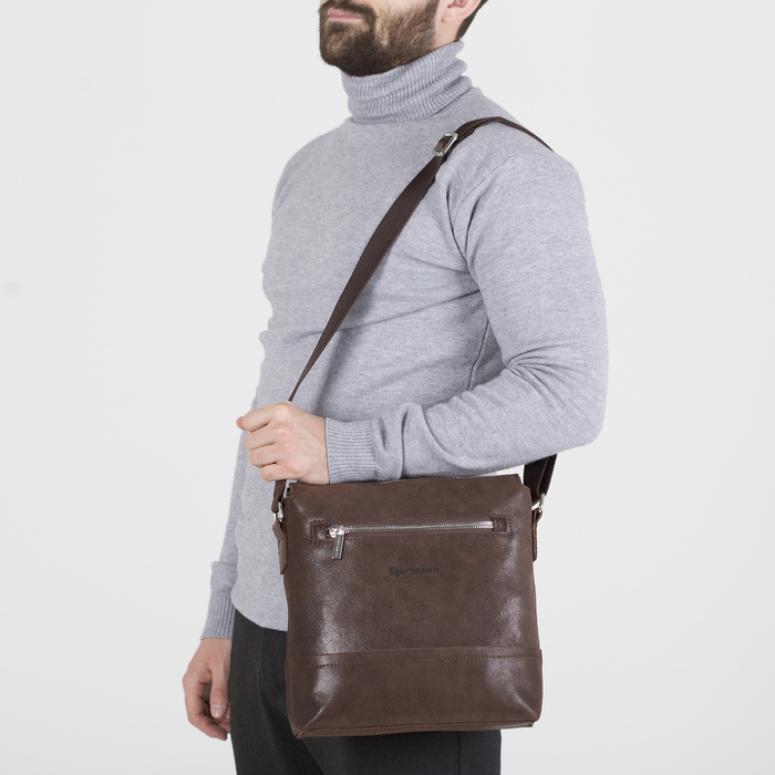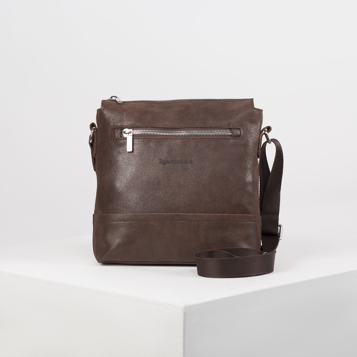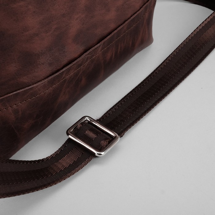 Сумка мужская, отдел на молнии, наружный карман, длинный ремень, цвет тёмно-коричневый