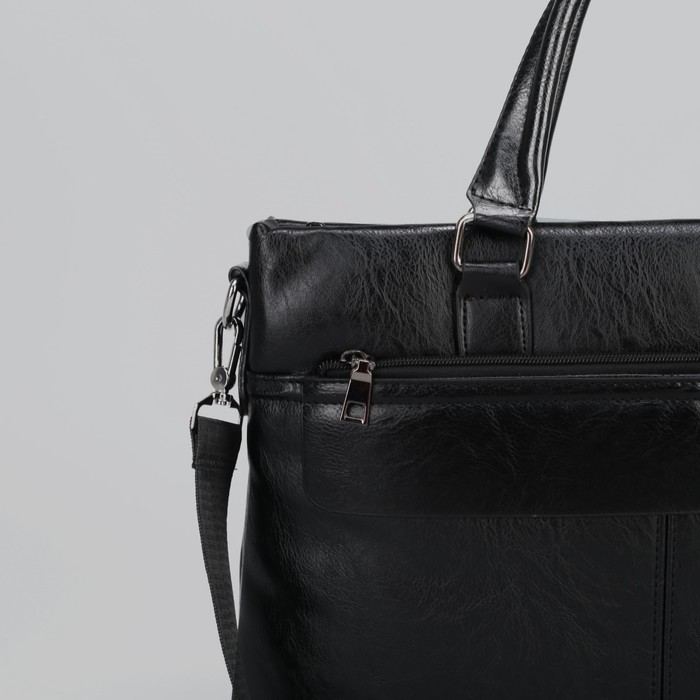 Сумка мужская, отдел на молнии, отдел для планшета, 2 наружных кармана, регулируемый ремень, цвет чёрный