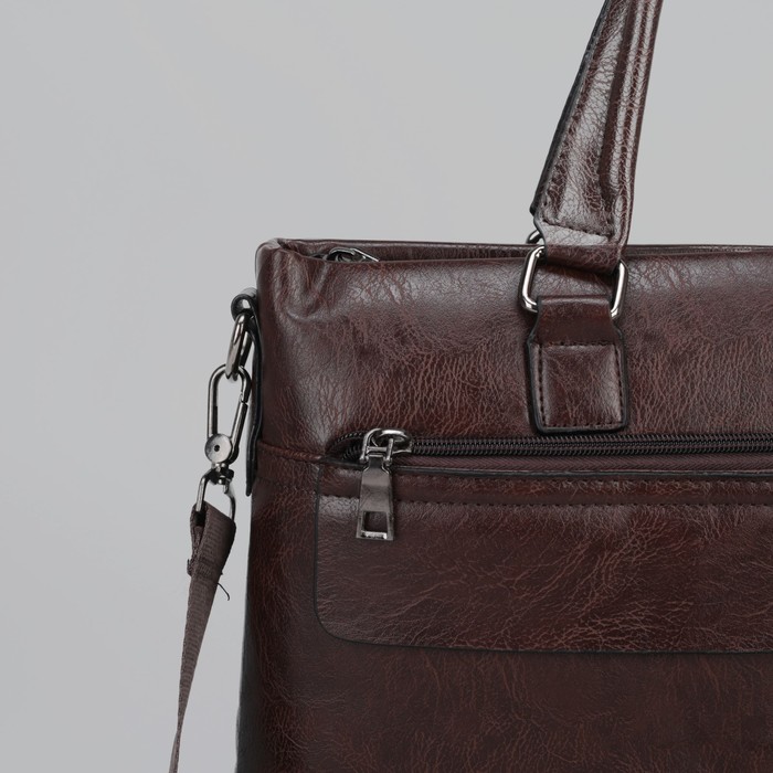Сумка мужская, отдел на молнии, отдел для планшета, 2 наружных кармана, регулируемый ремень, цвет коричневый
