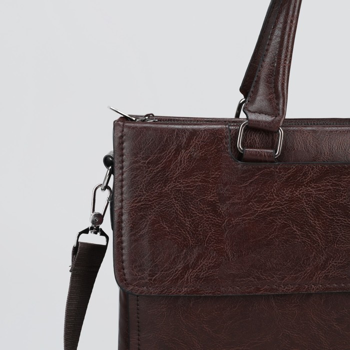 Сумка мужская, отдел на молнии, отдел для планшета, 2 наружных кармана, регулируемый ремень, цвет коричневый