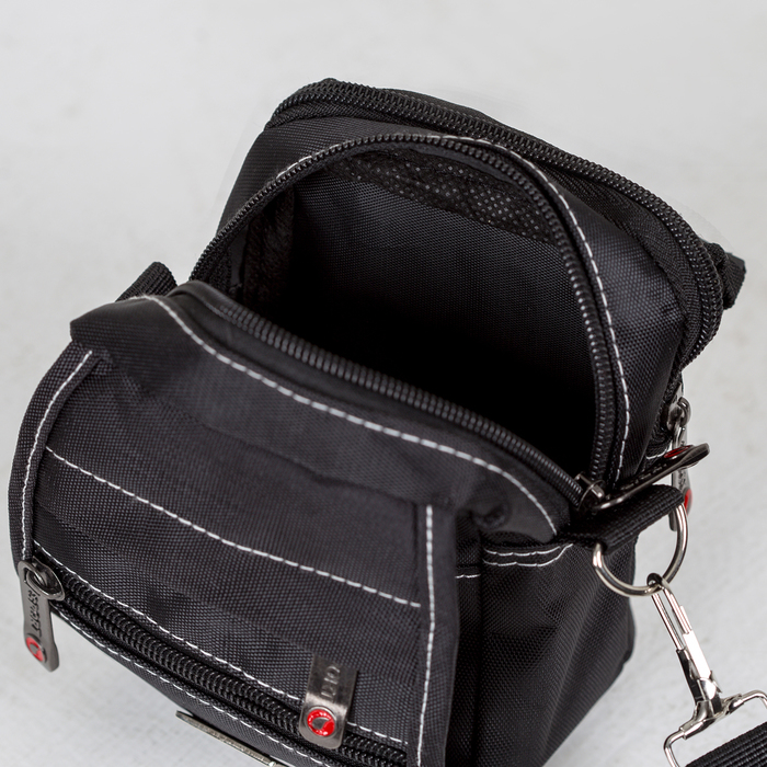 Сумка на пояс, 2 отдела на молниях, 3 наружных кармана, регулируемый ремень, цвет чёрный