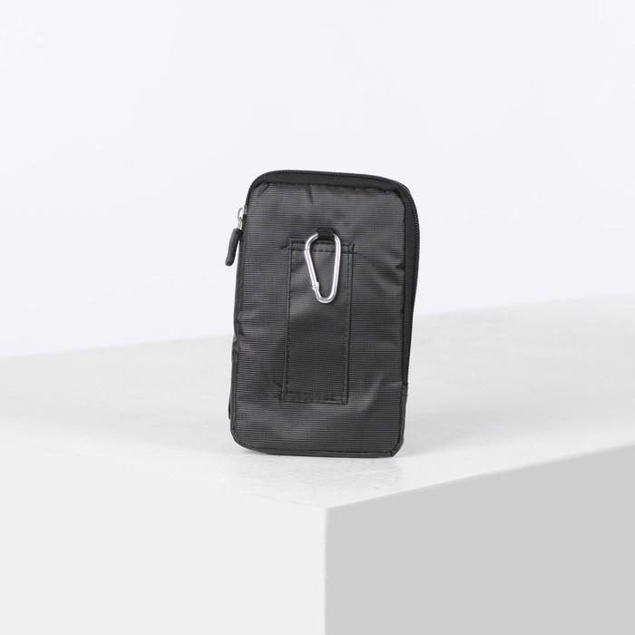 Сумка на пояс, отдел на молнии, 2 наружных кармана, карабин, цвет чёрный