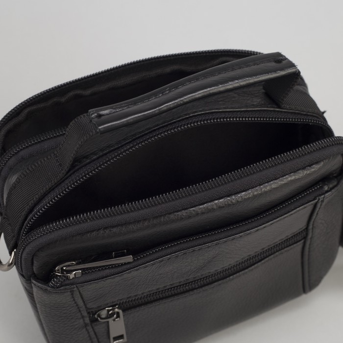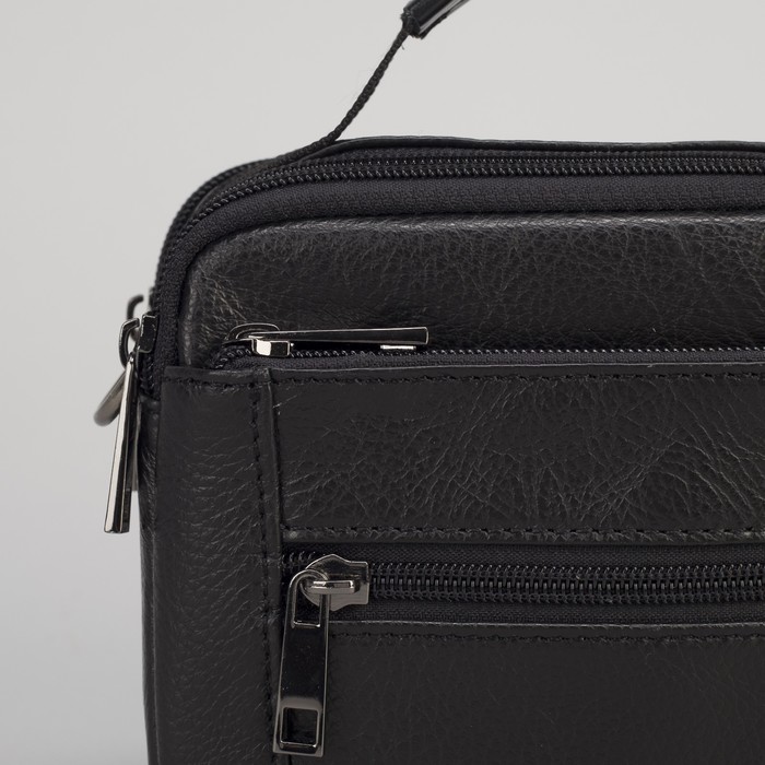 Сумка поясная на молнии, 2 отдела, 2 наружных кармана, длинный ремень, цвет чёрный