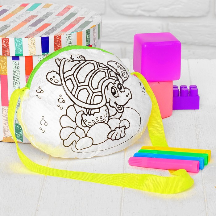 Сумка-раскраска "Черепашка", маркеры 4 цвета, смываются водой