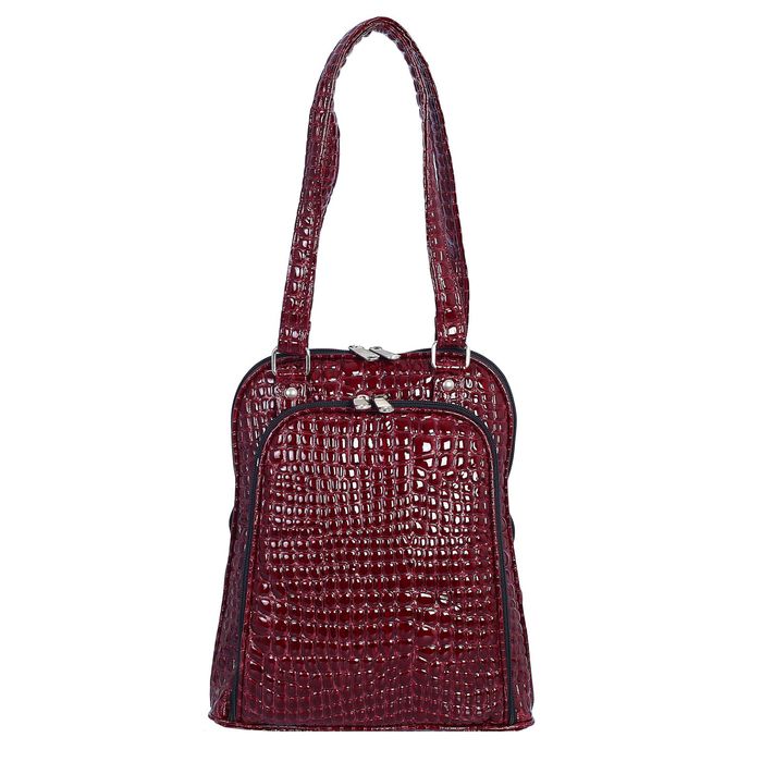Сумка-рюкзак молодёжная на молнии, 2 отдела, крокодил бордовый