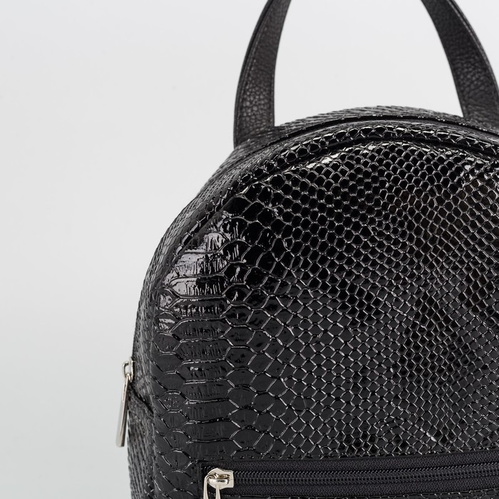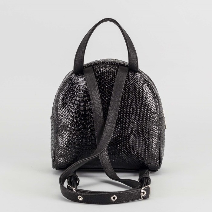 Сумка-рюкзак женский, отдел на молнии, наружный карман, змея, цвет чёрный