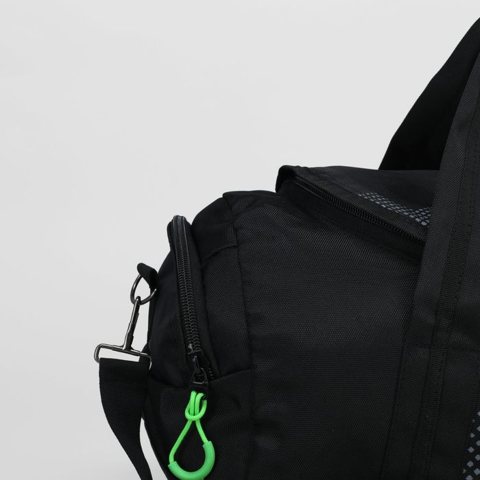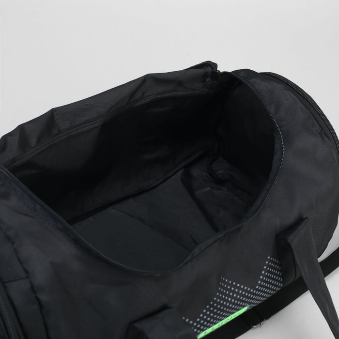 Сумка спортивная 398, 40*25*25, 1 отдел на молнии, 2 н/кармана, длинн ремень, черный/зелен.