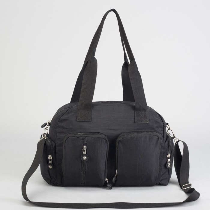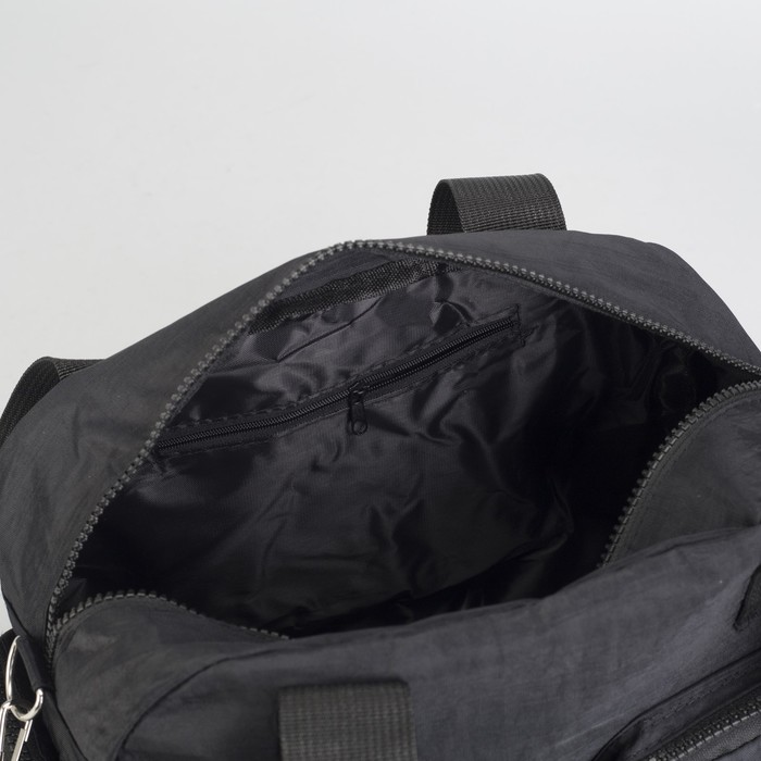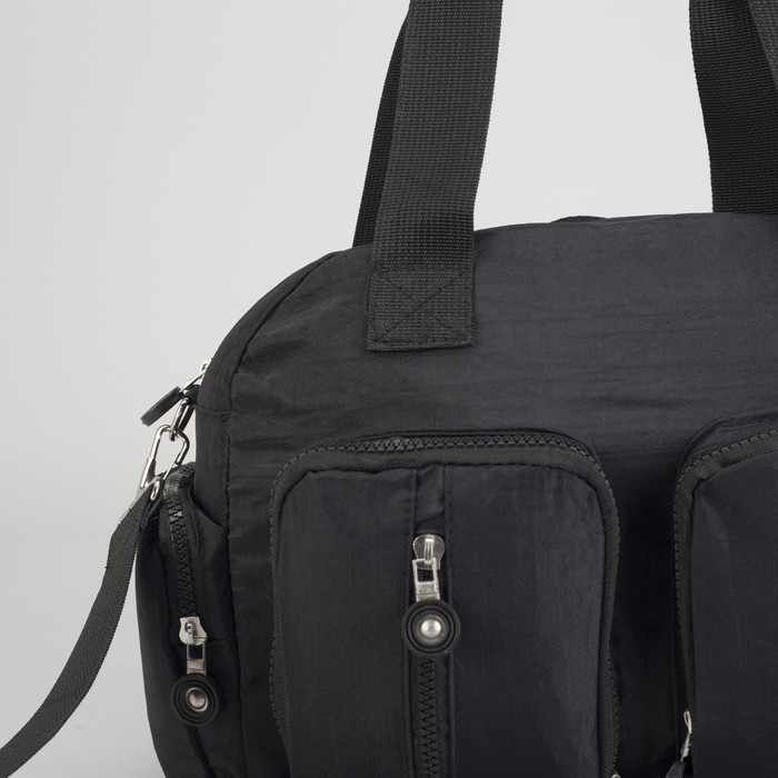 Сумка спортивная на молнии "Жатка", 1 отдел, 6 наружных карманов, длинный ремень, чёрная