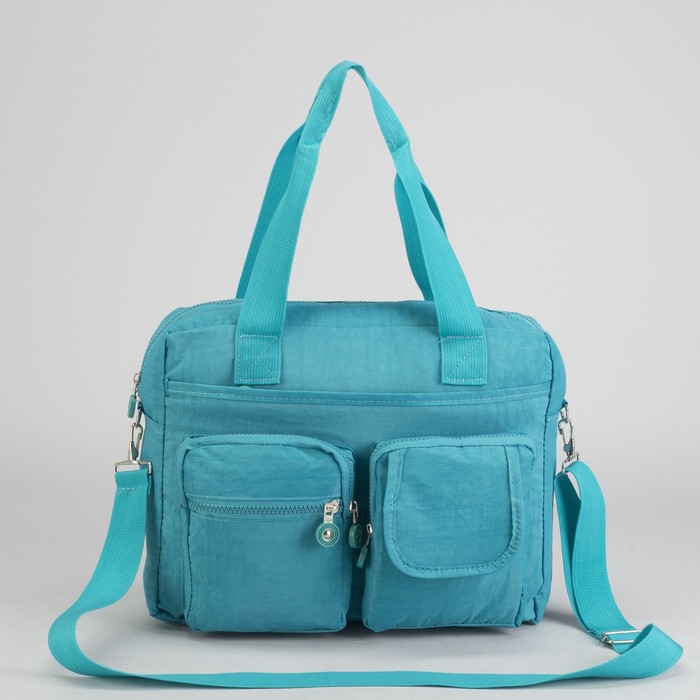 Сумка спортивная на молнии "Жатка", 1 отдел, 6 наружных карманов, длинный ремень, цвет бирюзовый