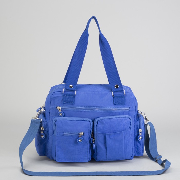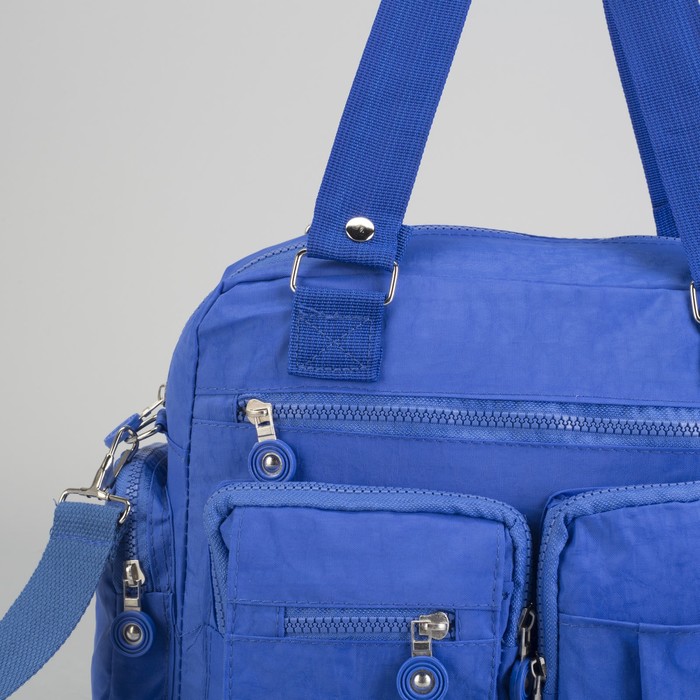 Сумка спортивная на молнии "Жатка", 1 отдел, 8 наружных карманов, длинный ремень, синяя
