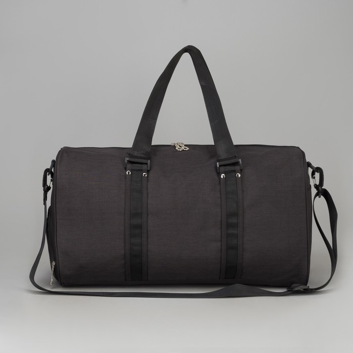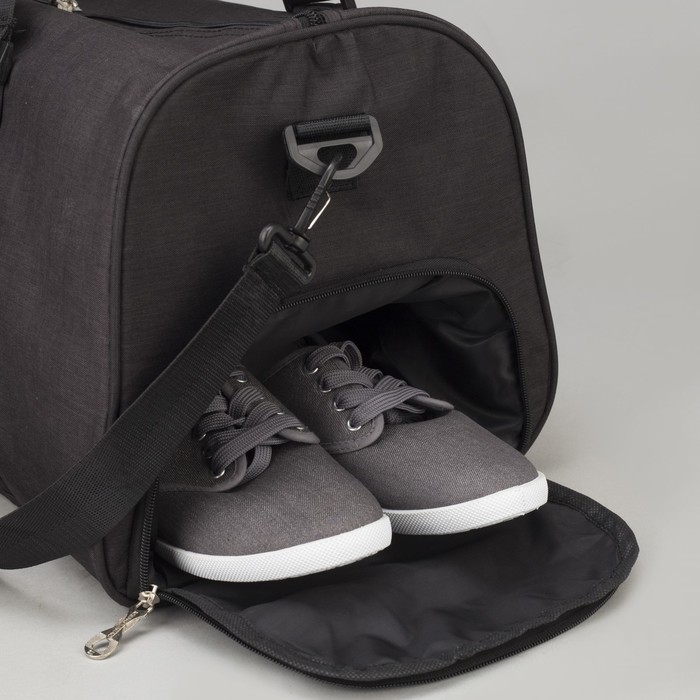 Сумка спортивная "Стиль", отдел на молнии, наружный карман, для обуви, длинный ремень, цвет чёрный