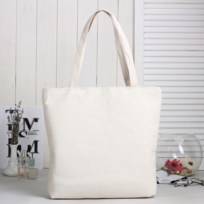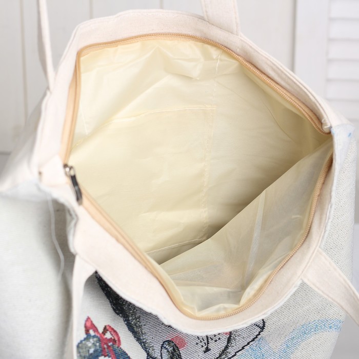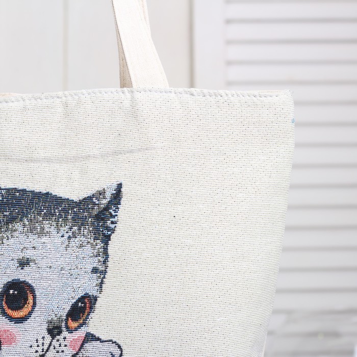Сумка текстильная Кот в чашке, 36*10*40, отд на молнии, подклад, бежевый