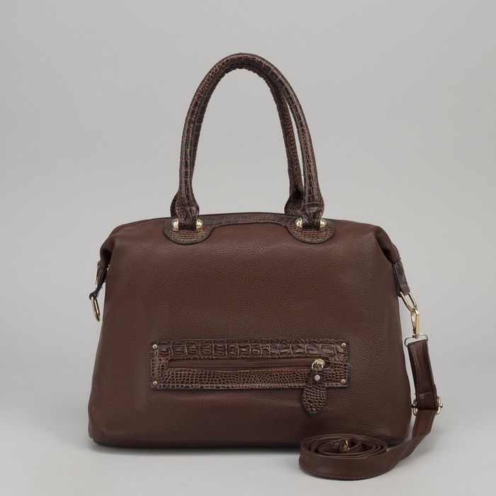 Сумка женская, 1 отдел с перегородкой, 2 наружных кармана, длинный ремень, цвет коричневый