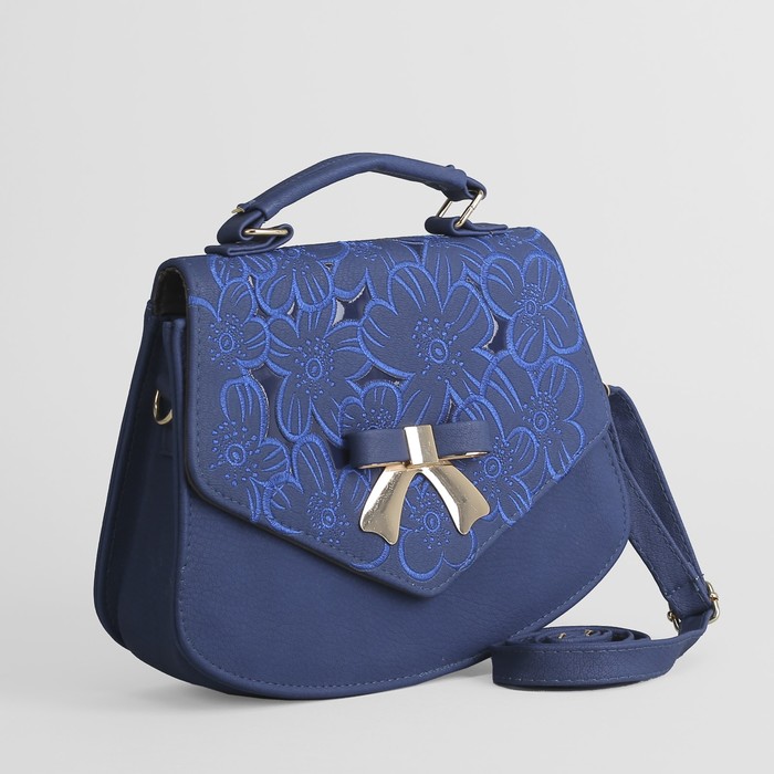 Сумка женская, 1 отдел с перегородкой на молнии, длинный ремень, ручка, цвет синий