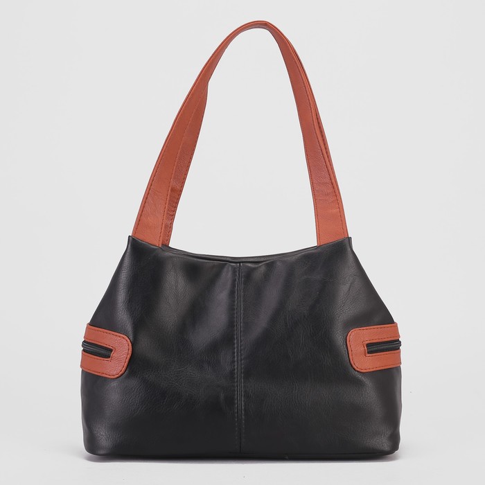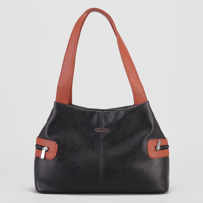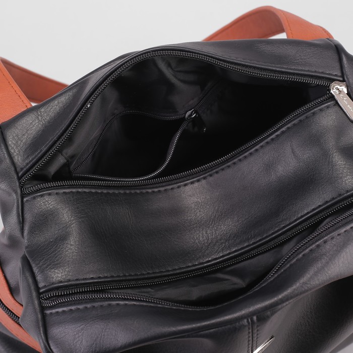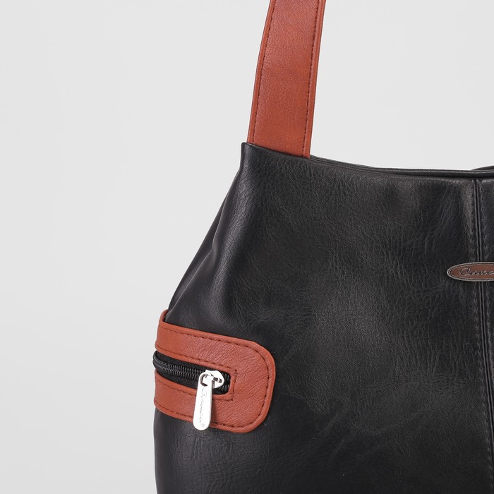 Сумка женская, 2 отдела на молнии, 2 наружных кармана, цвет чёрный/коричневый