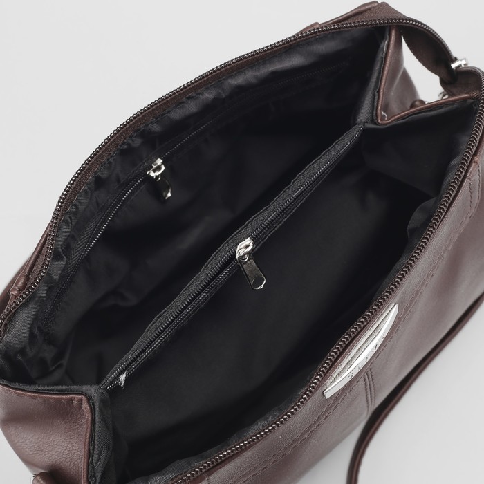 Сумка женская, 2 отдела на молнии, регулируемый ремень, цвет коричневый