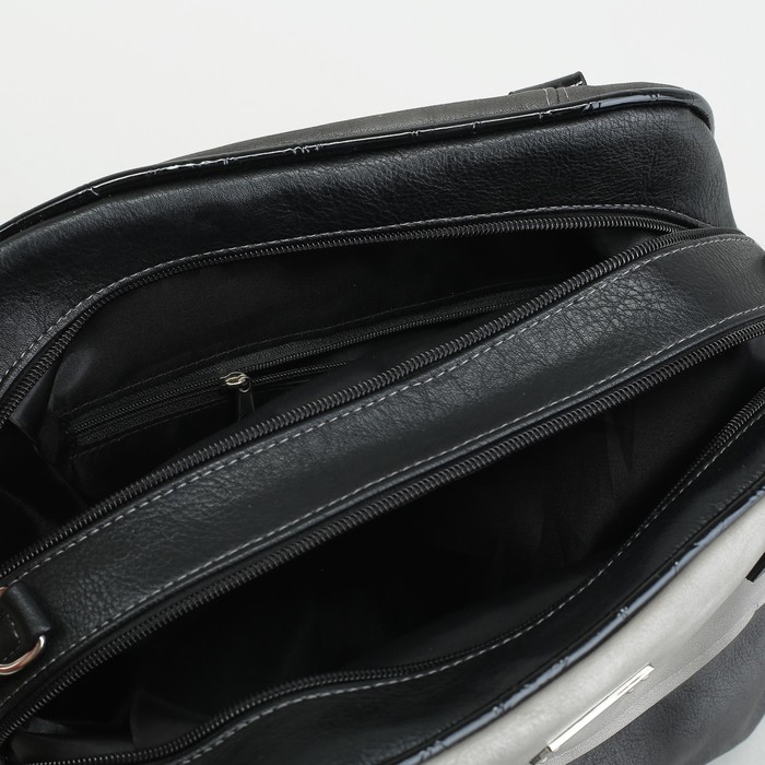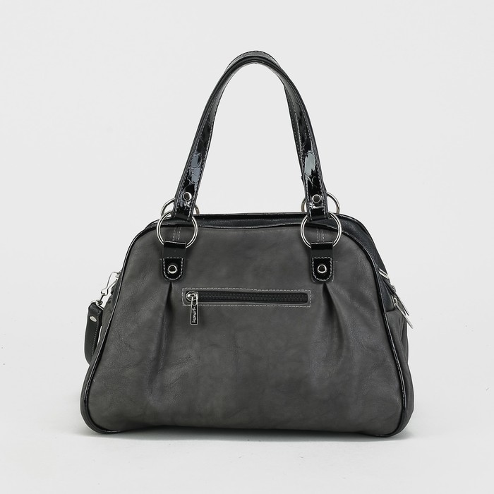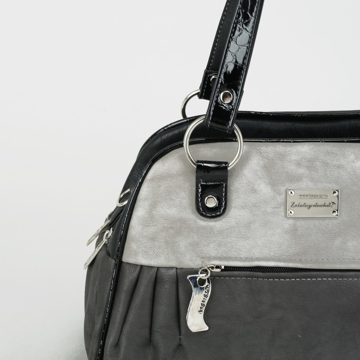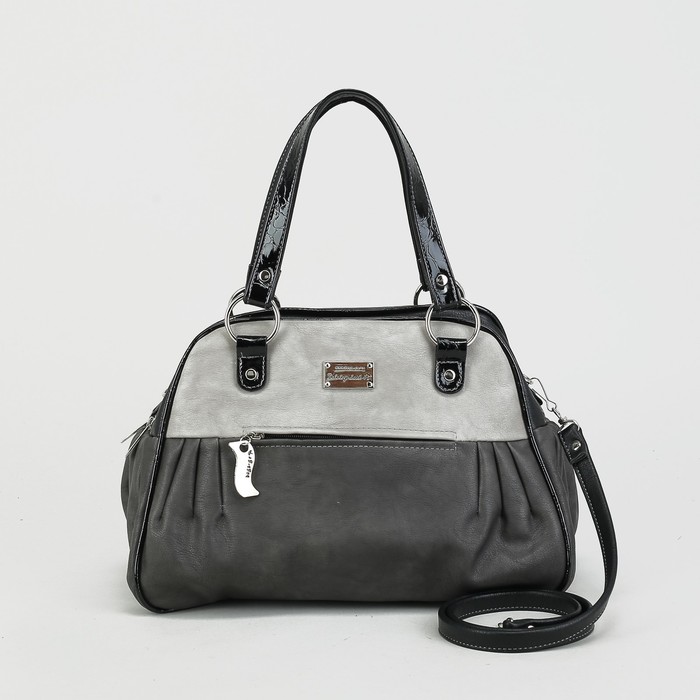 Сумка женская, 2 отдела на молниях, 2 наружных кармана, длинный ремень, цвет серый