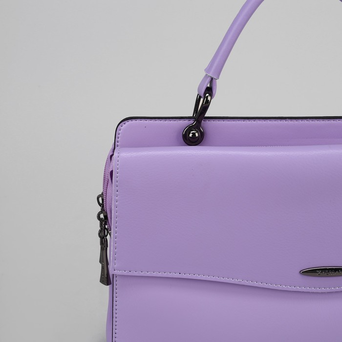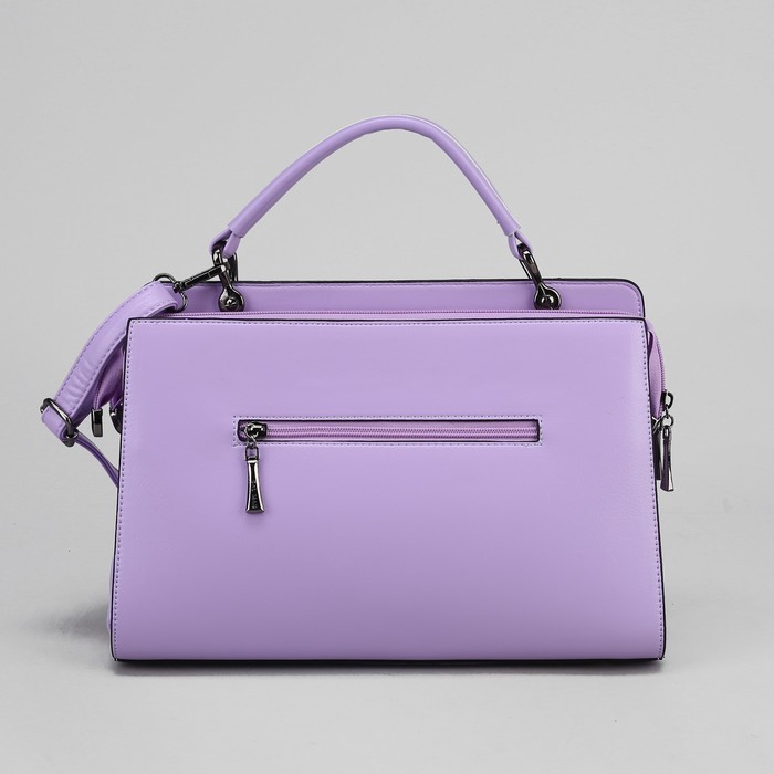 Сумка женская, 2 отдела на молниях, наружный карман, длинный ремень, цвет сиреневый