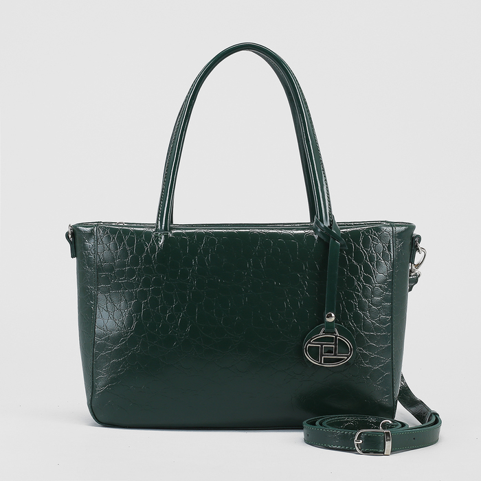 Сумка женская, 2 отдела с перегородкой на молнии, наружный карман, изумрудные камни