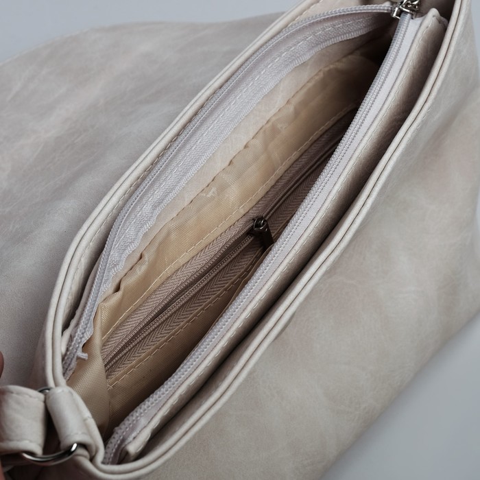 Сумка женская на молнии, 1 отдел, 1 наружный карман, длинный ремень, серая