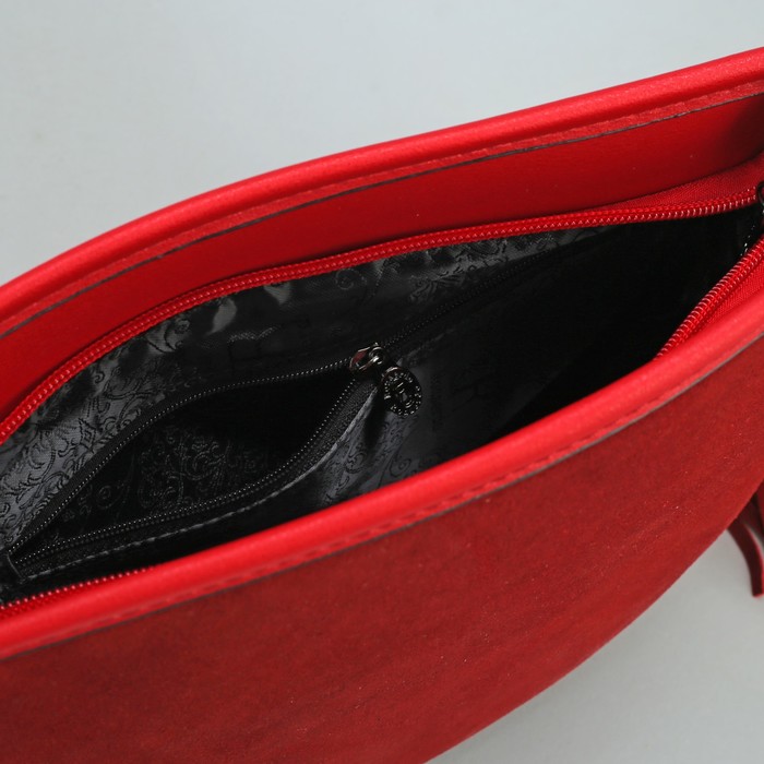 Сумка женская на молнии, 1 отдел, наружный карман, длинный ремень, цвет красный