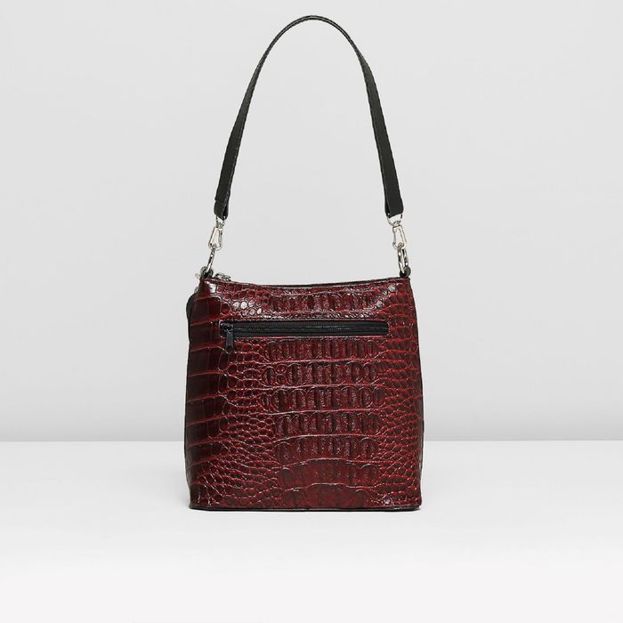 Сумка женская на молнии, 1 отдел, наружный карман, длинный ремень, крокодил, цвет красный
