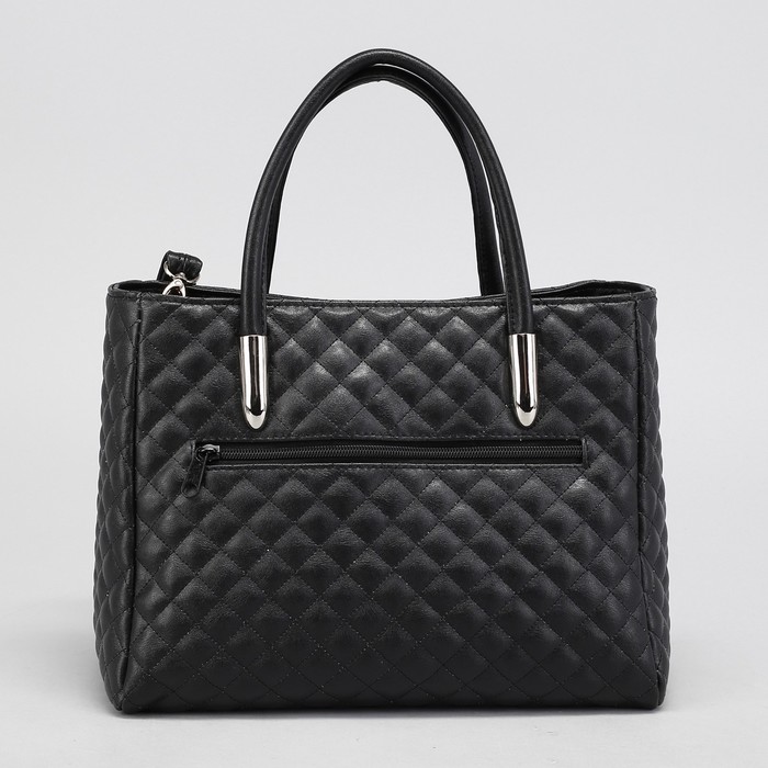 Сумка женская на молнии, 1 отдел, наружный карман, длинный ремень, стёжка, чёрная