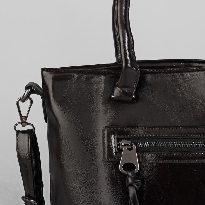 Маленькие, казалось бы, незначительные элементы зачастую завершают, дополняют образ, подчёркивают статус, стиль и вкус своего обладателя. Сумка женская на молнии, 1 отдел с перегородкой, 2 наружных кармана, цвет коричневый — одна из подобных деталей. Это вещь достойного качества, которая может стать прекрасным подарком по любому поводу.
