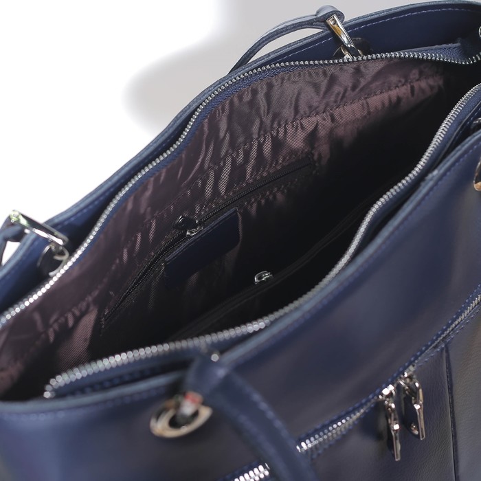 Сумка женская на молнии, 1 отдел с перегородкой, 2 наружных кармана, цвет синий