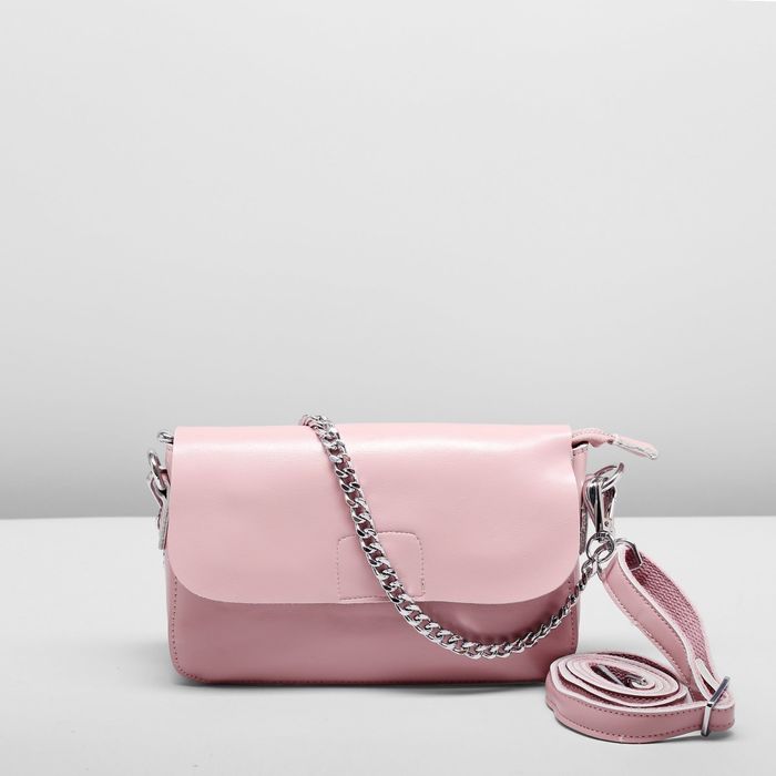 Сумка женская на молнии, 1 отдел с перегородкой, 2 наружных кармана, длинный ремень, цвет пудра