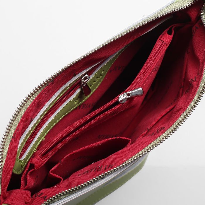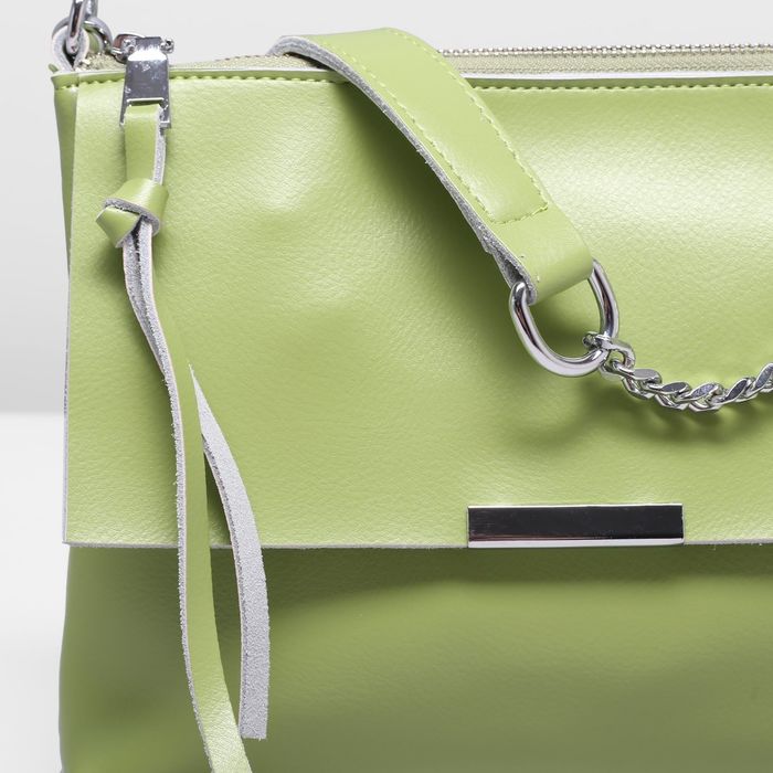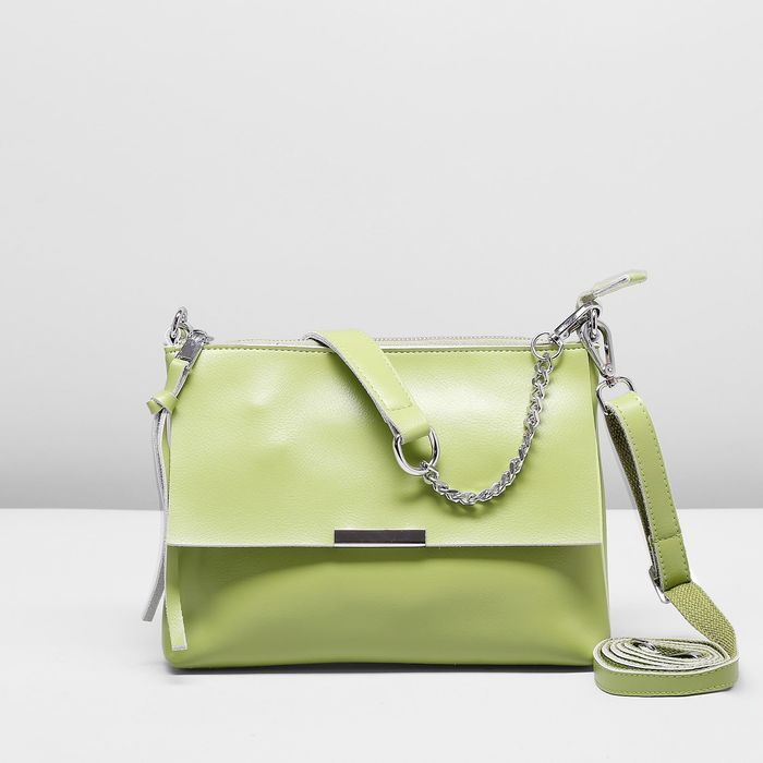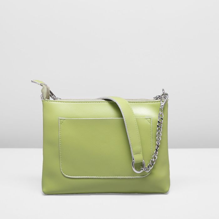 Сумка женская на молнии, 1 отдел с перегородкой, 2 наружных кармана, длинный ремень, цвет зелёный