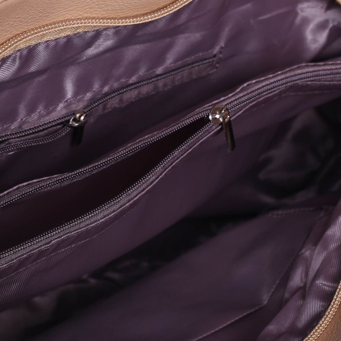 Сумка женская на молнии, 1 отдел с перегородкой, наружный карман, цвет тёмно-бежевый