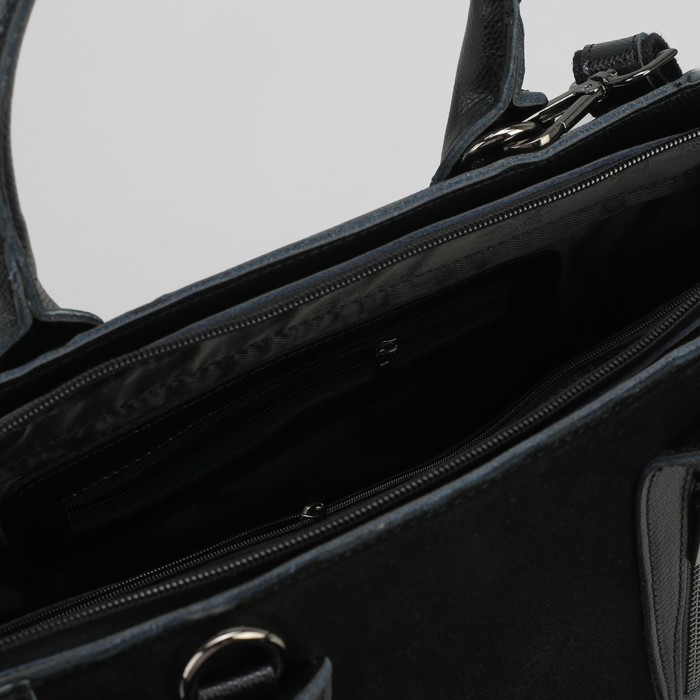Сумка женская на молнии, 1 отдел с перегородкой, наружный карман, длинный ремень, цвет чёрный