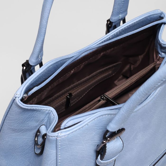 Сумка женская на молнии, 1 отдел с перегородкой, наружный карман, длинный ремень, цвет голубой