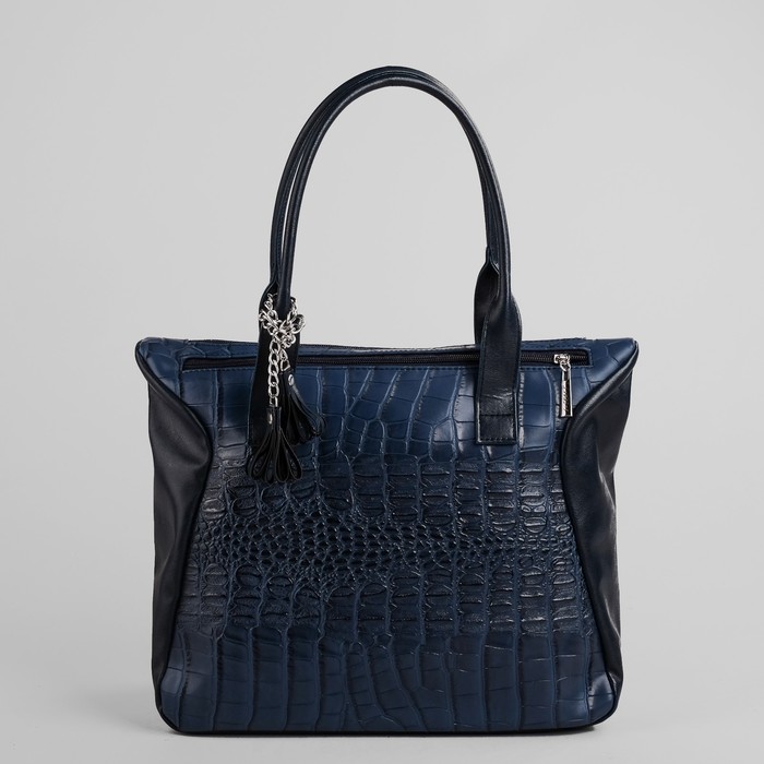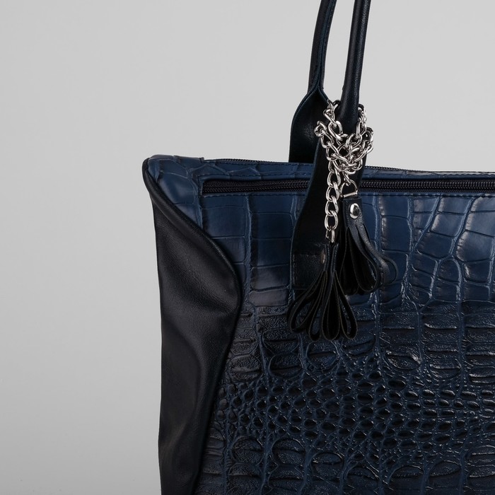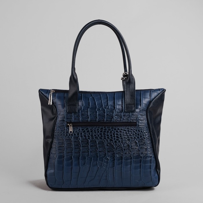 Сумка женская на молнии, 2 отдела, 1 наружный карман, синий крокодил