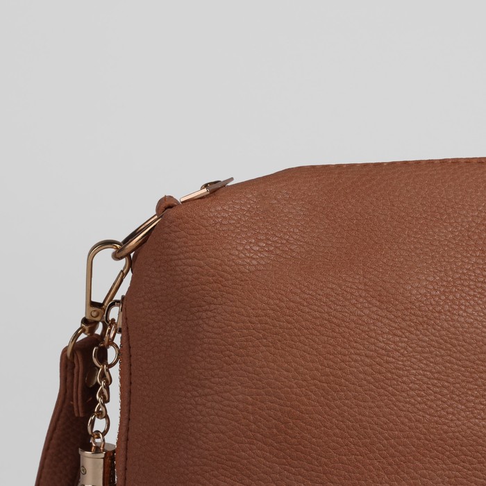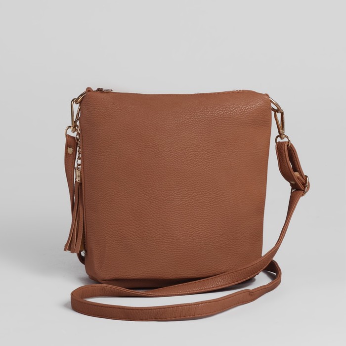 Сумка женская на молнии "Элен", 1 отдел, 2 наружных кармана, длинный ремень, бежевая