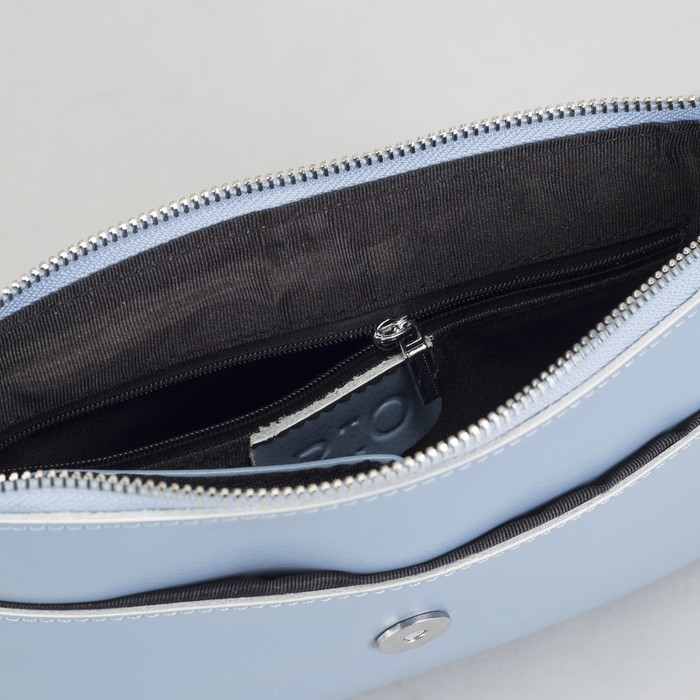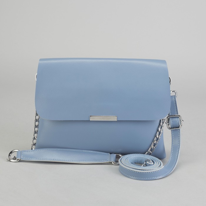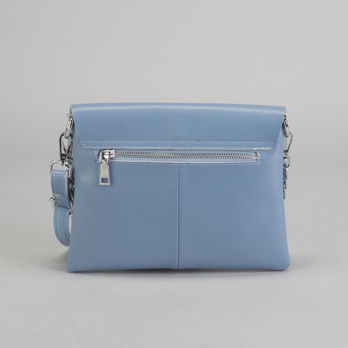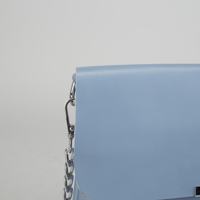 Сумка женская, отдел, 2 наружных кармана, цепь, длинный ремень, цвет голубой