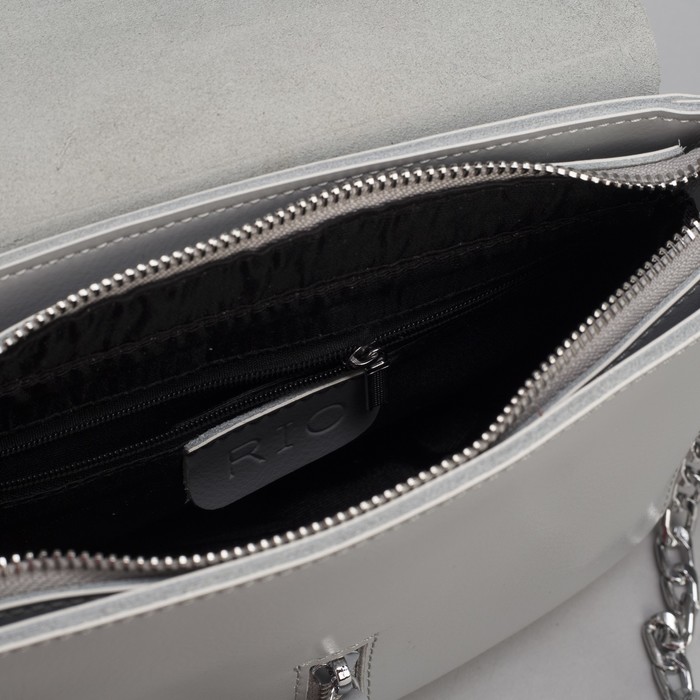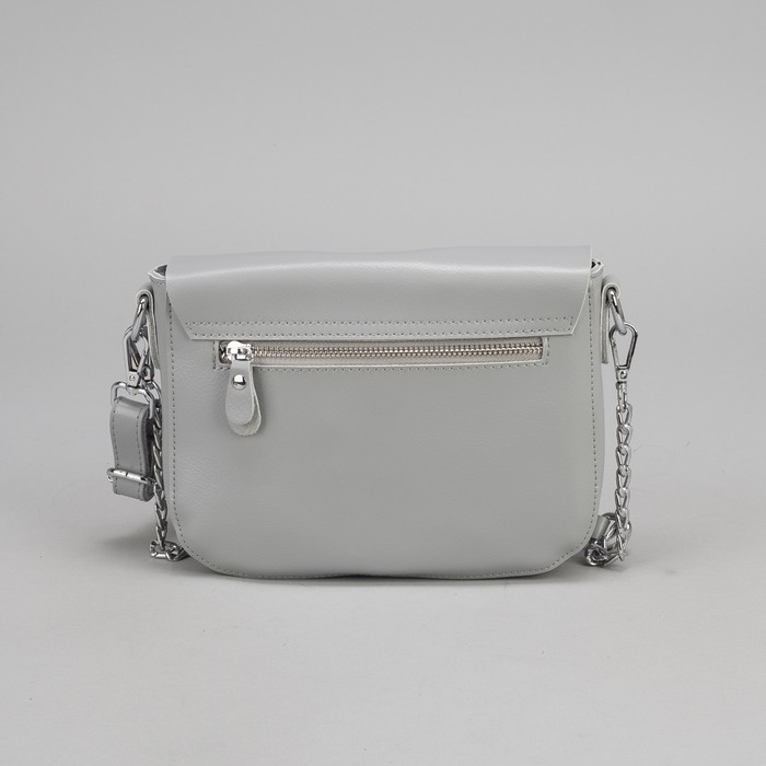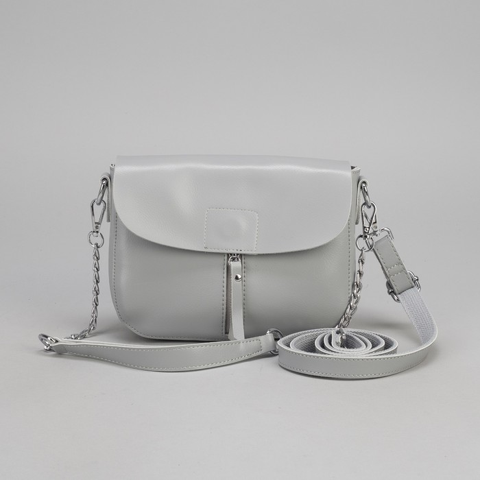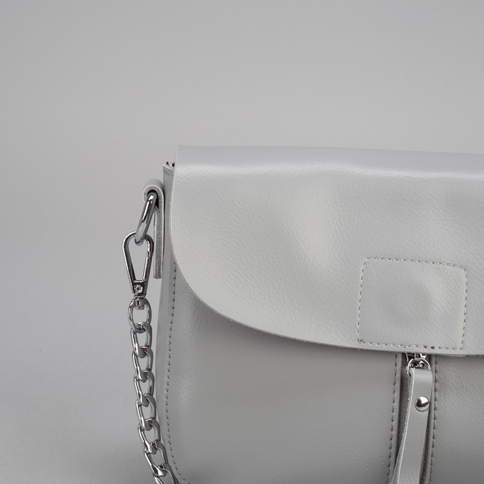 Сумка женская, отдел на молнии, 2 наружных кармана, цепь, длинный ремень, цвет серый