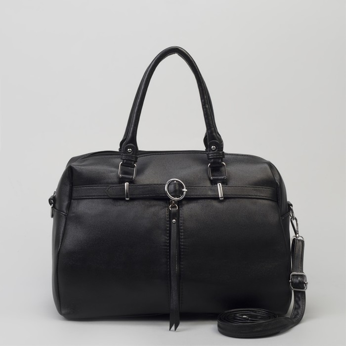 Сумка женская, отдел на молнии, 2 наружных кармана, длинный ремень, цвет чёрный