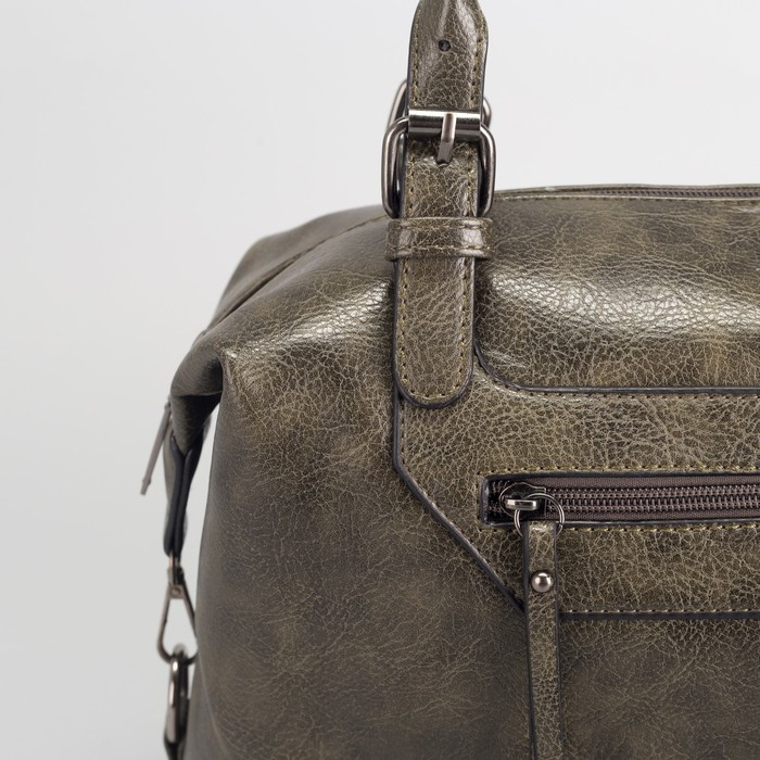 Сумка женская, отдел на молнии, 2 наружных кармана, длинный ремень, цвет оливковый