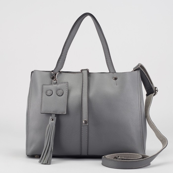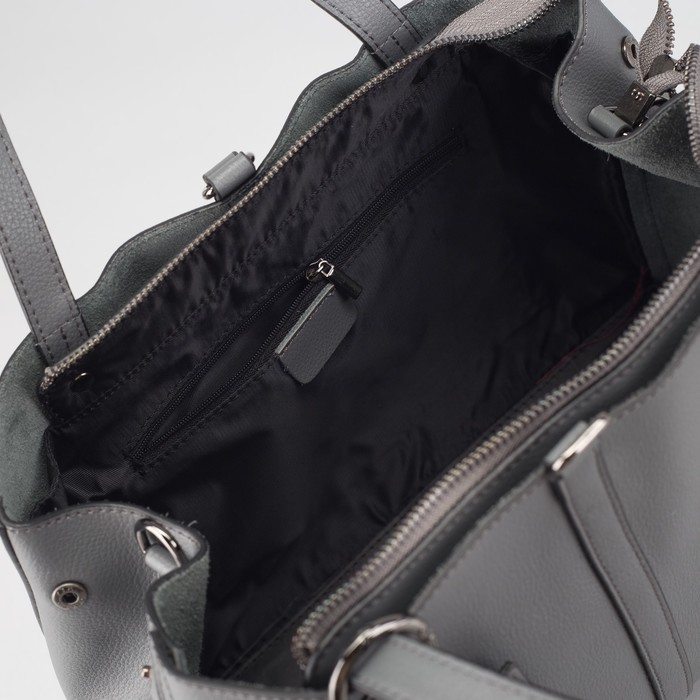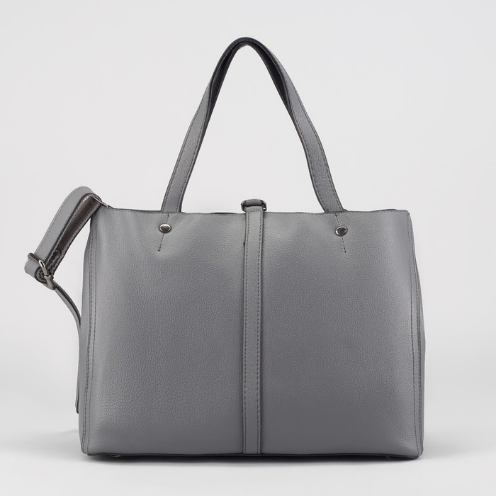 Сумка женская, отдел на молнии, 2 наружных кармана, длинный ремень, цвет серый