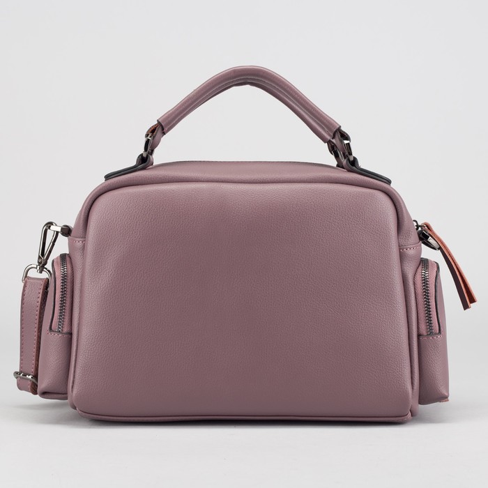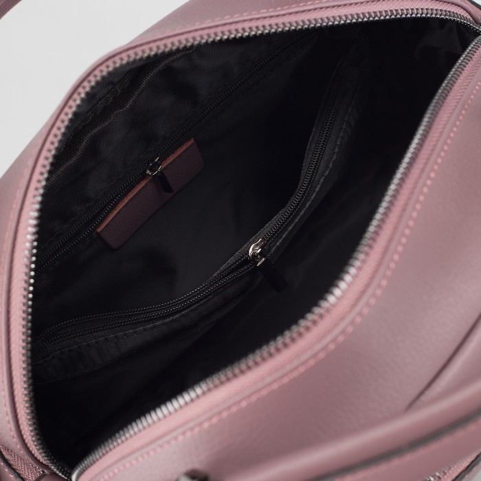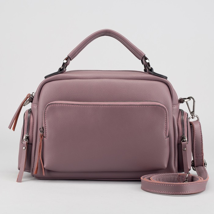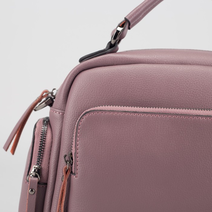 Сумка женская, отдел на молнии, 3 наружных кармана, длинный ремень, цвет пудровый