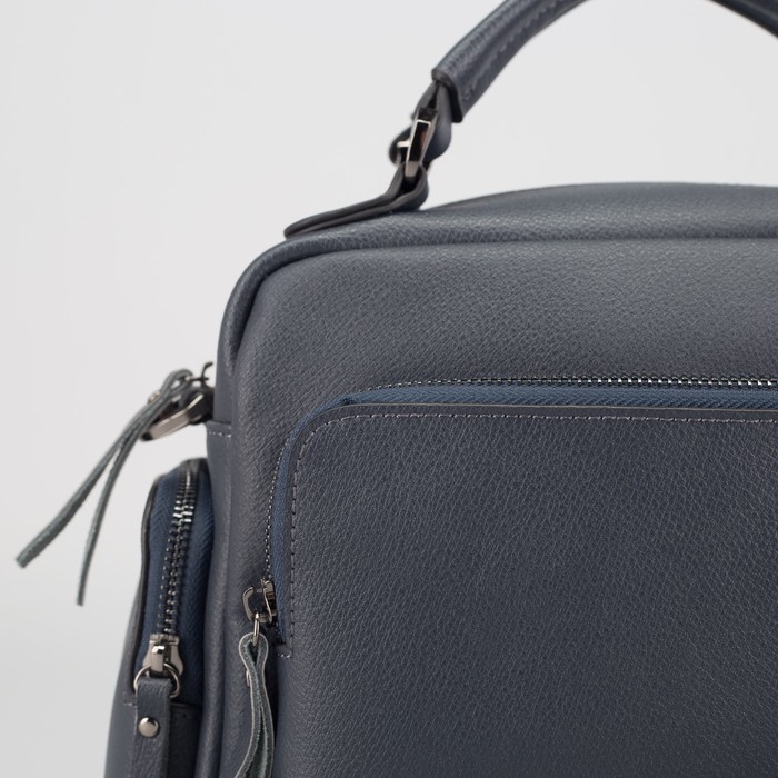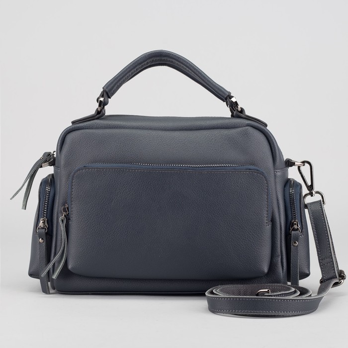Сумка женская, отдел на молнии, 3 наружных кармана, длинный ремень, цвет синий