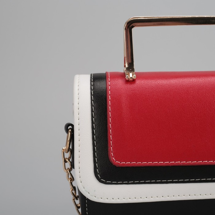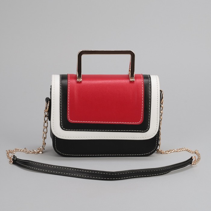 Сумка женская, отдел на молнии, длинная цепь, цвет чёрный/красный