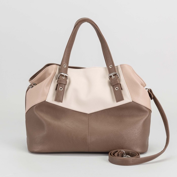 Сумка женская, отдел на молнии, наружный карман, длинный ремень, цвет бежевый