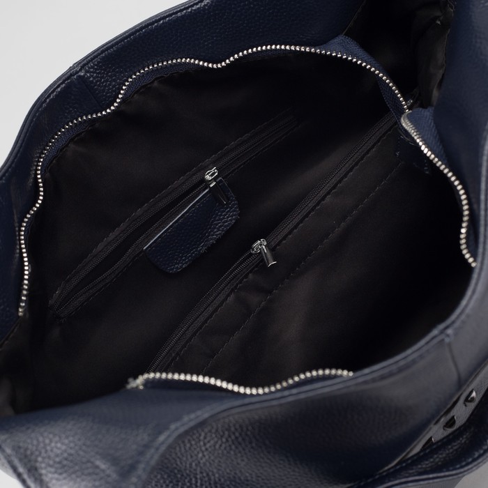 Сумка женская, отдел с перегородкой на молнии, 2 наружных кармана, длинный ремень, цвет синий