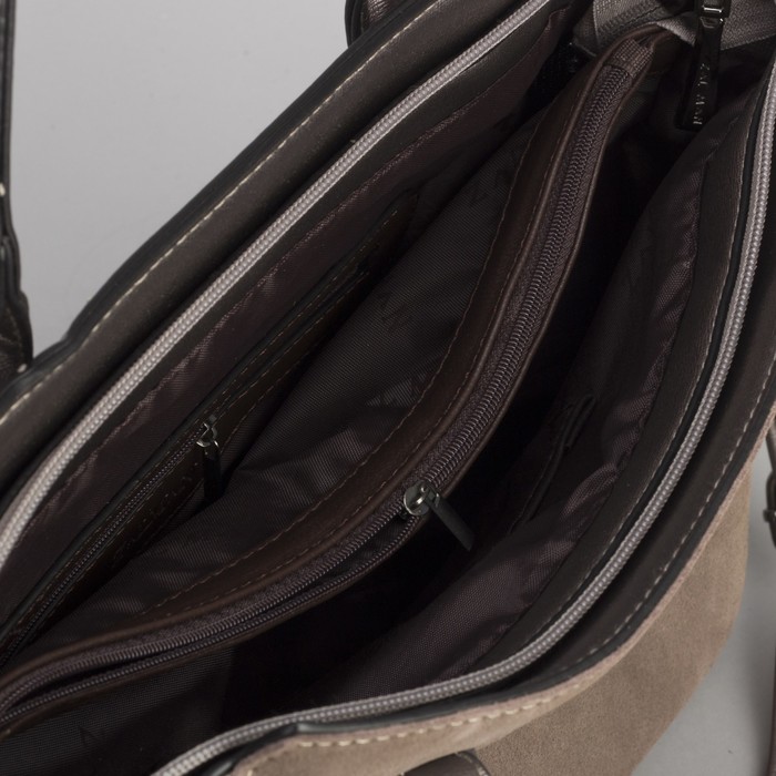 Сумка женская, отдел с перегородкой на молнии, наружный карман, длинный ремень, цвет серый
