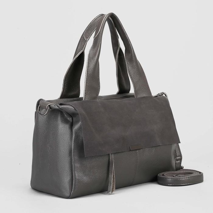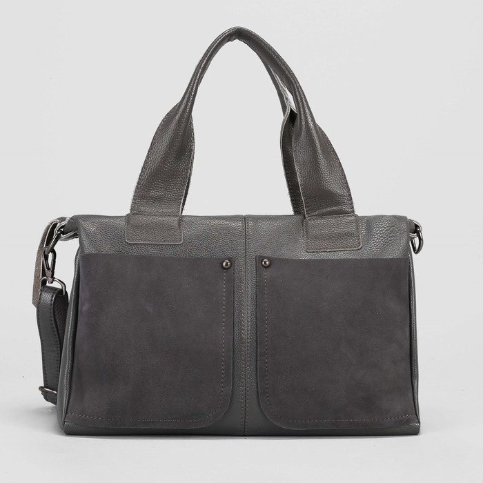 Сумка женская, замша, отдел с перегородкой, 3 наружных кармана, длинный ремень, цвет серый