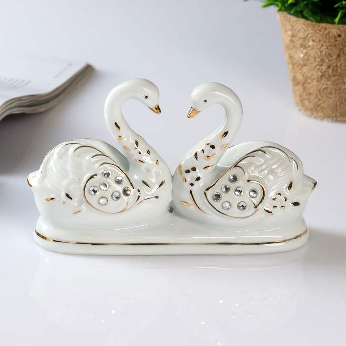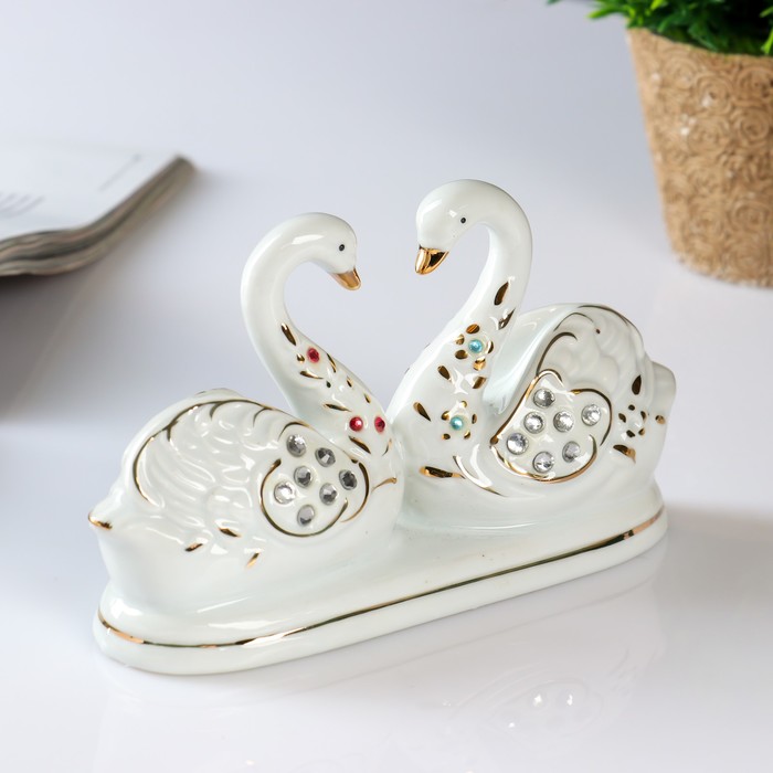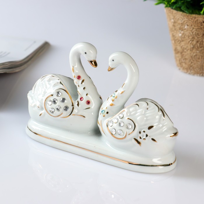Сувенир "2 лебедя" с цветными стразами, под фарфор
