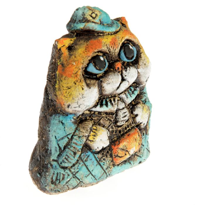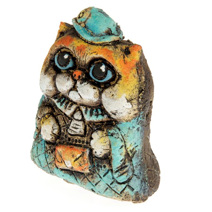 Милые декоративные фигурки всегда будут актуальным способом украсить помещение, особенно, если они сделаны в виде кошек! Взгляните на этого забавного пушистика. Сувенир выполнен из огнеупорной глины (её ещё называют шамот) и расписан мастерами вручную. Замечательная вещица поднимет вам настроение даже в ненастный день!